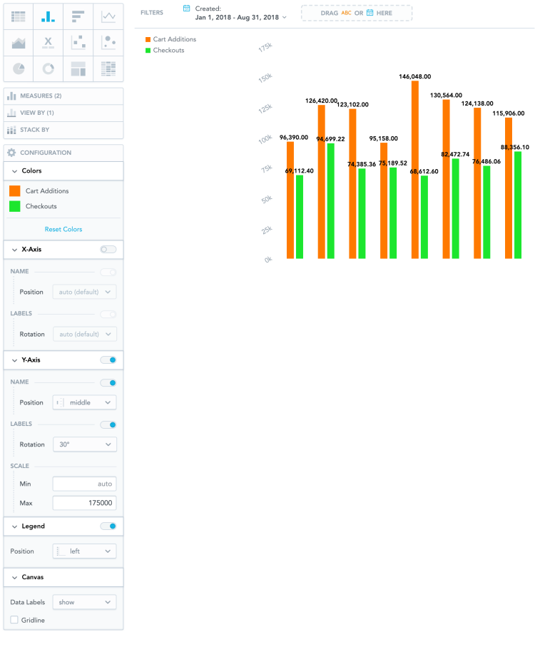 • Set the Y-axis (Left) scale from 0 to 175000